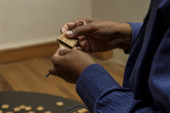 This is part of an art installation by Pansee Atta, reproducing more than 4,000 labels from this colonial-era collection of human parts and inviting visitors to the World Museum Amsterdam to “organise” them.