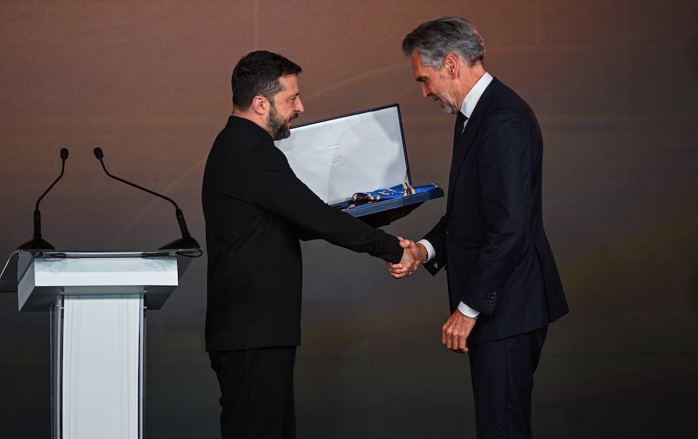 During the meeting, Zelensky presented Schoof with a national honour to thank the Netherlands for its help. “Dear Dick,” he said, “the Netherlands is one of our strongest defence partners. We appreciate this enormously.”