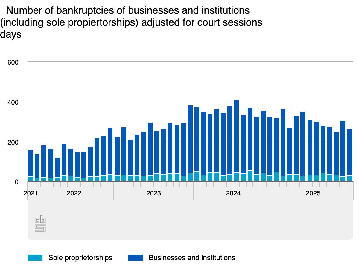 The decline took the average bankruptcy rate for 2025 as a whole to 8.2 per 100,000 businesses, compared with 9.8 the previous year.