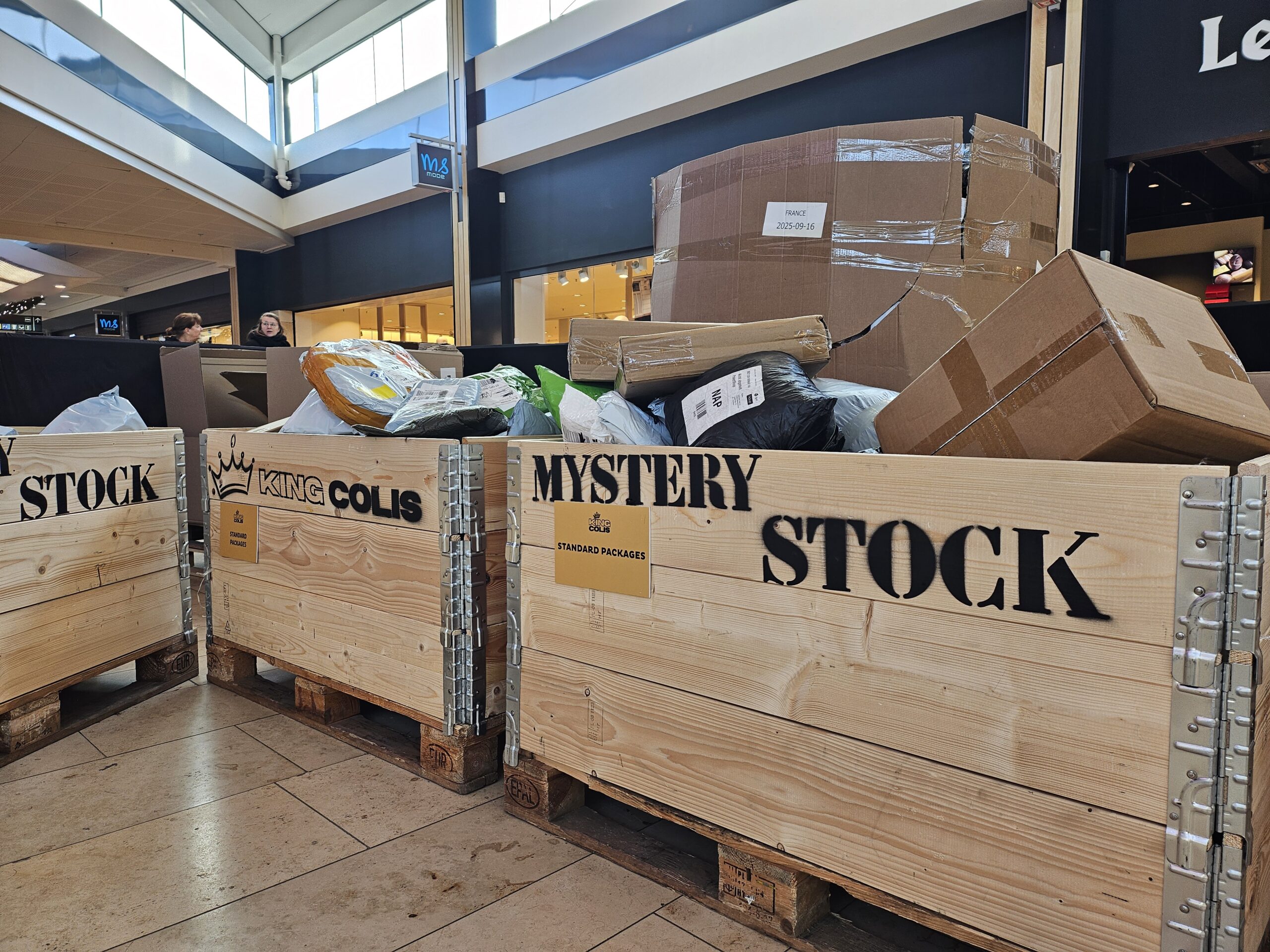 The French company sells lost packages at pop up events around Europe. Ever had a Bol package disappear or an Amazon return get lost en route? It might be one of the hundreds of packages stacked in wooden crates in the middle of a mall somewhere north of Amsterdam.