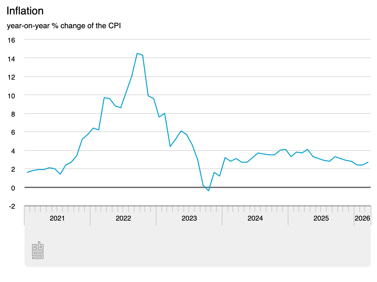 Inflation had soared up to 14% in October 2022 following the Russian invasion of Ukraine but has hovered between 2% and 3% since December 2023.
